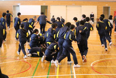 体育大会に向け、中学2年生の練習が始まりました! 体育館で、まずダンスの練習から。昨年度の体育で経験済みのダンスは、音楽に合わせてスムーズに進み、生徒たちの笑顔が輝いていました。川下りの練習前には、各クラスでミーティングを実施。作戦を立て、意気込みを新たにして練習に臨みました。初めての川下りでしたが、クラスで協力し、試行錯誤しながらも楽しんで取り組む様子が見られました。体育館は、生徒たちの熱意と活気に満ち溢れていました!