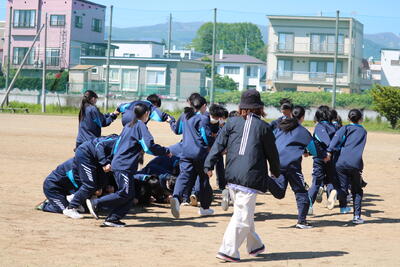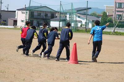 5時間目のグランドでは2年生が体育大会に向けての練習を行っていました。