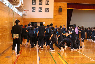 今日は各学年2時間の体育大会練習がありました。体育館から声援が職員室まで響いていたので、覗いてみると3年生でした。どのクラスも互いに声を掛け合いながら、練習に取り組んでいました。体育大会まであと2日です。