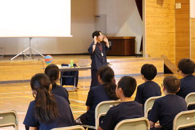 また、SNS上での悪口、仲間外れ、いじめといった行為が、場合によっては検挙の対象となるという厳しい現実も共有されました。さらに、SNSを通じた脅迫行為や自画撮り被害も増加傾向にあるとのことで、もし心配なことや困ったことがあれば、一人で抱え込まずに必ず大人に相談するよう、具体的なアドバイスがありました。