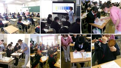 授業は、食事の際に「よく噛むこと」がダイエット効果にもつながるという興味深いお話からスタート。生徒たちは、手鏡を使って自分の口の中の状況を確認したり、唾液のPHを確認したりするなど、聞くだけでなく体験的な要素も多く、楽しみながら積極的に学習に取り組みました。