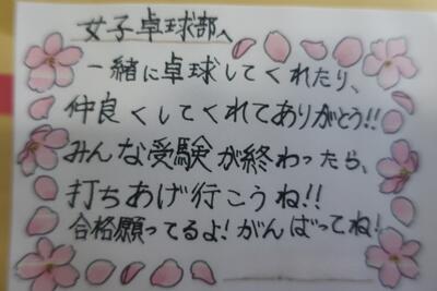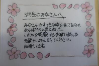 みなさんの頑張りは、後輩たちに、そして私たち教職員にしっかりと伝わっています。 どうか自分を信じて、胸を張って試験に臨んでください。学校全体が、みなさんのサポーターです。心から応援していますよ!